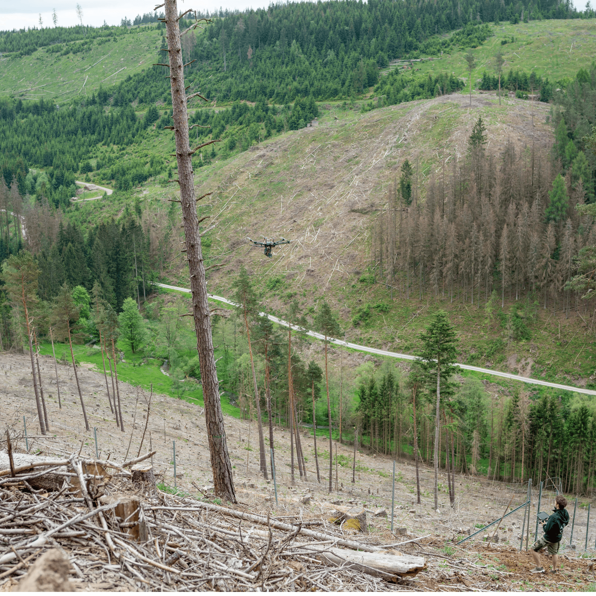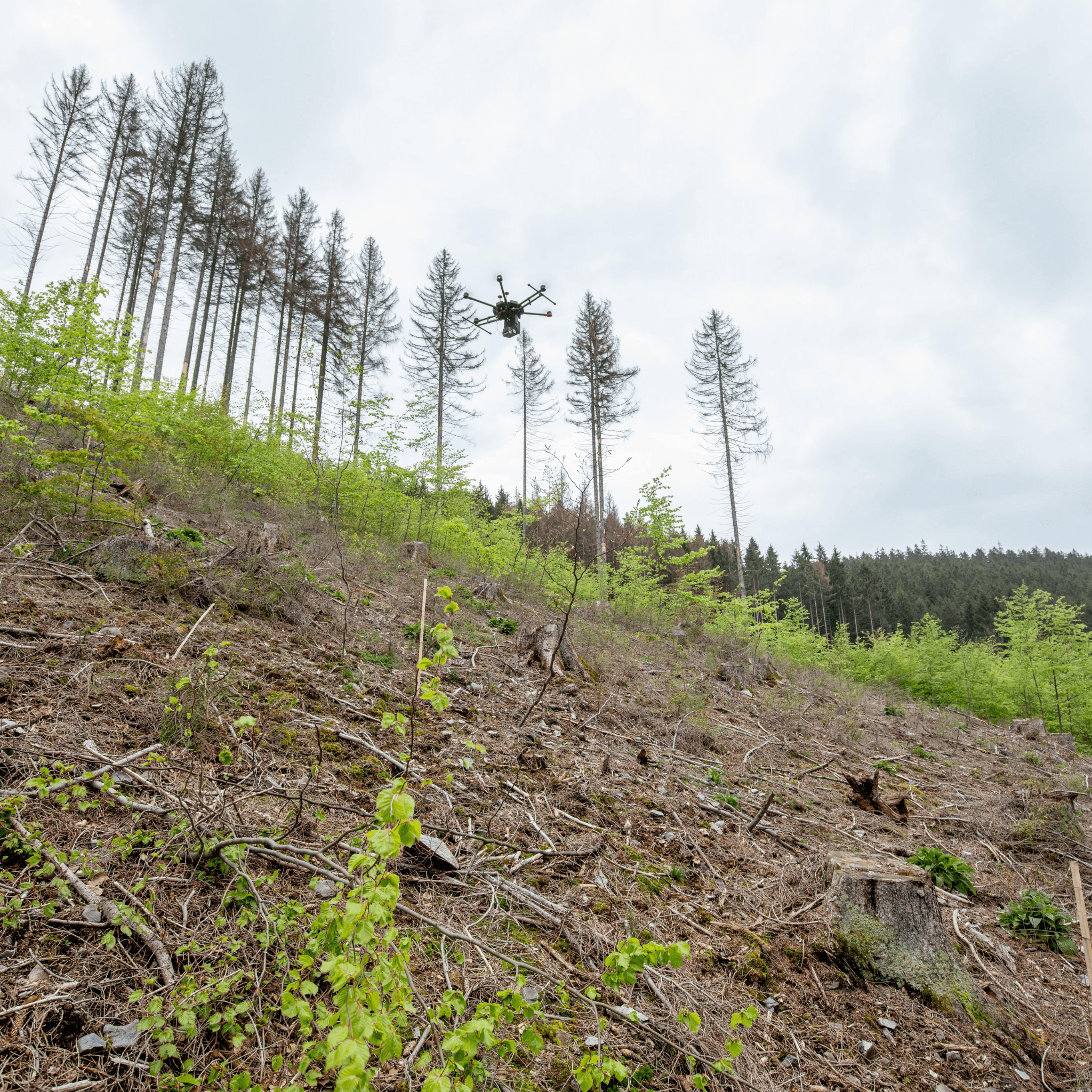 Unsere Pflanzdrohnen setzen neue Maßstäbe für zukunftsfähige Aufforstungen - in jedem Terrain.